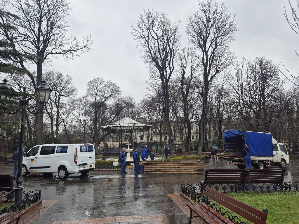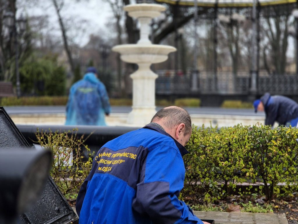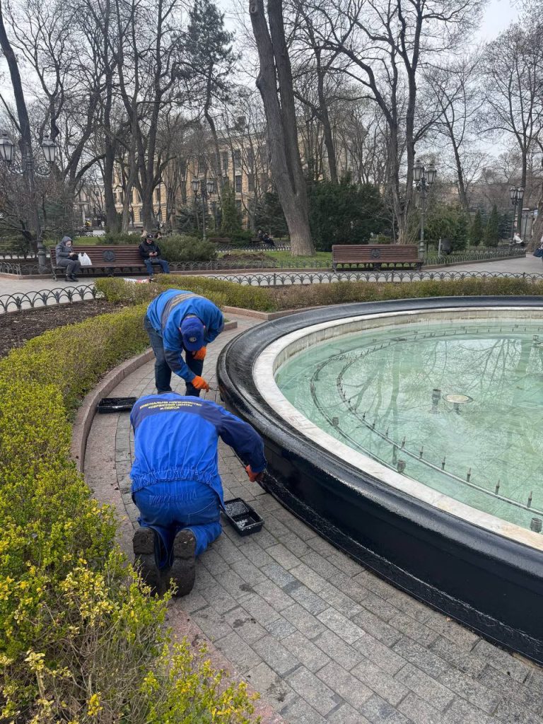 Працівники КП «Сервісний центр» почали розконсервацію та запуск міських фонтанів після зимового періоду. Першим запустили фонтан у Міському саду.